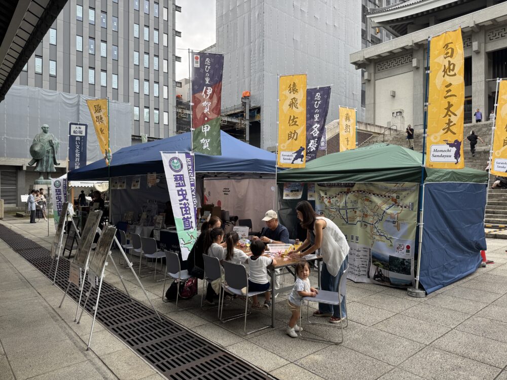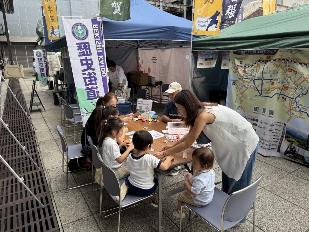 協議会のブースでは、歴史街道倶楽部の入会受付や協議会が発行しているマップ等を配架するとともに、簡単なクイズを答えていただき正解の方には、記念品をプレゼンとしたり、隣では色紙をつかった手裏剣等子供さんから大人まで楽しんでいただきました。