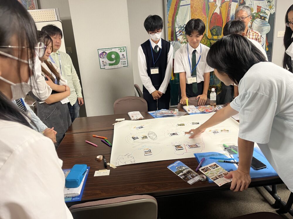 最後は3班にわかれて、ワークショップです。それぞれ「友達や家族に伝えたい」写真を撮影した写真の中から3枚ずつ選んでプリントアウト。その写真を「どうして撮ったのか」「何を伝えたいのか」を話しながら、グループでの意見をまとめていきます。最後に発表、感想をのべて終了しました。 参加者の皆さんには、プログラムを通して、岸和田の魅力を堪能していただきました。 アンケートより The guides are all friendly and supportive Thank you for having us here 岸和田という出身ではないけど高校がある所で、色々知ってみたいなぁとは思っていたので色んなところを外国人の方と回れたのは大変面白かったです! I am so happy that I joined the program. Initially I hesitated to sign up because Kishiwada is kind of far from Kyoto where I live. But I am glad I did it and learnt a lot from the experience. 6時間という長い時間でしたがあっと言う間に終わってしまいました。友だちの誘いできたのですがとても楽しかったです。ここらへんの学校に通っていますが全く地域のことについて知らないんだと痛感しました。本当に良い経験になったと思います。 続けて下さい I really enjoyed everything of it, the amiability of the guides and the students.. I felt very welcomed This was my second time participated in the program!!! I would like to participate again! I have a really good impression of the program. Thank you so much It's definitely very fun and I learned a lot. I would definitely come again. 今回の経験では、留学生の方々と一緒に岸和田の歴史ある建物や文化について学ぶことが出来て本当に良かったです。留学生の方々が日本の文化についてどんな趣味を持っているのか。日本のことについて色々聞けて良かったです。