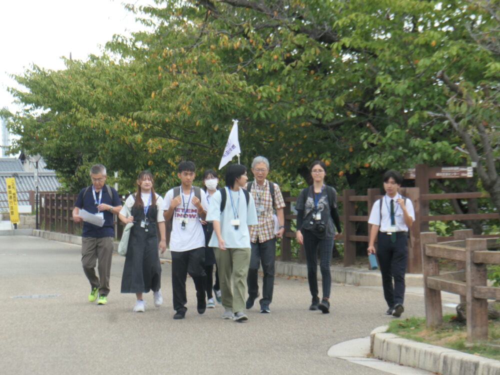 9月23日(火・祝)、岸和田市において日本文化体感プログラムを実施しました。 応募された高校生5名、留学生7名の方々には、 9月16日(火)~22日(月)、「日本文化の伝え方 Touch the split of Japan」(日本語・英語版)を視聴していただきました。 9月23日、岸和田だんじり会館に集合。まずはプログラム全体の説明の後、自己紹介をしてから出発です。見学は2班にわかれて出発しました。