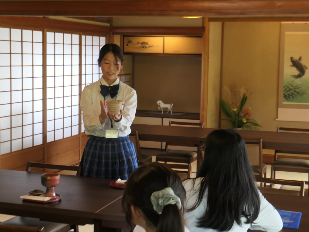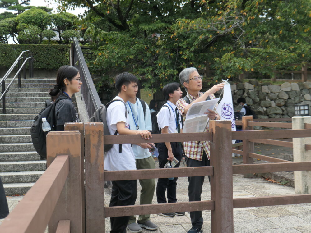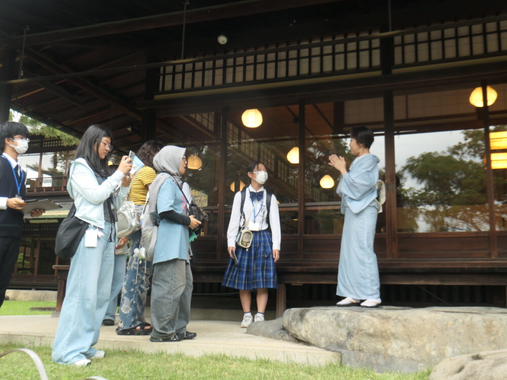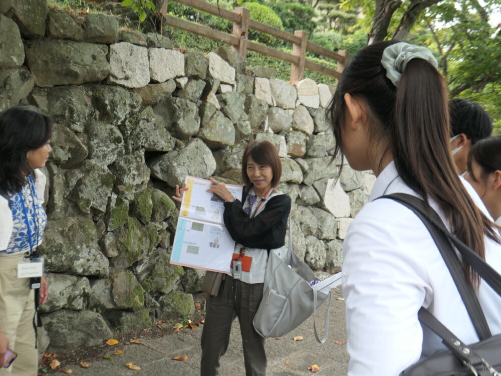 見学箇所は、五風荘と岸和田城、岸和田だんじり会館の3か所。 五風荘では、庭園と館内にわかれます。庭園は五風荘の担当の方の説明を聞きながら日本庭園を鑑賞。館内では、抹茶と和菓子を提供していただきました。 茶道部で活動している高校生は、どうやってお茶を飲むのか、わかりやすく説明していました。 岸和田城内部は資料館になっていますが、石垣は往時のまま。修復など、それぞれ年代の違う石垣についてガイドの方の説明を聞きながら見てまわりました。 二の丸庭園での昼食後はだんじり会館へ。迫力ある実際のだんじりや祭の様子を映像で見て、だんじり祭りの魅力に触れていました。