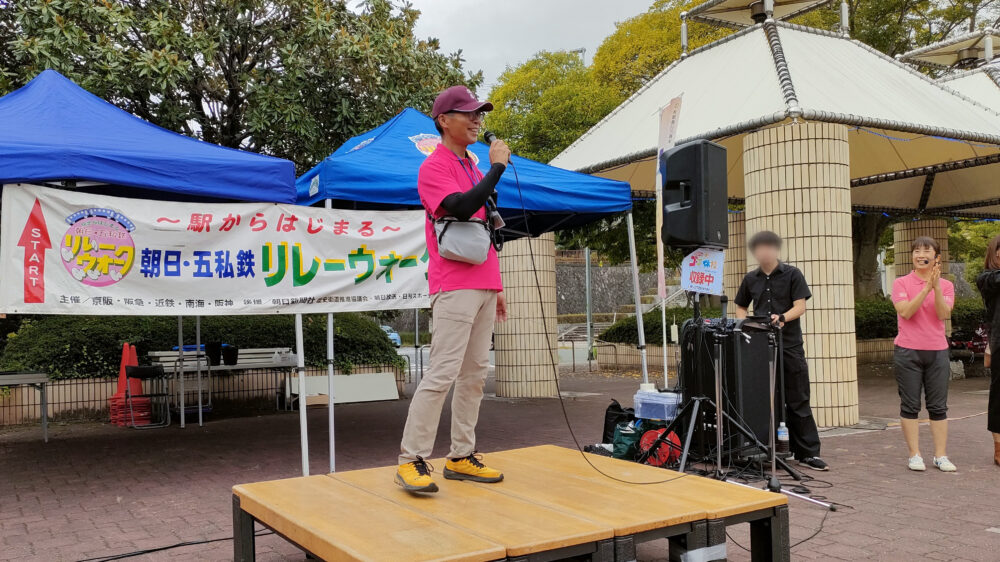 開催日:2025年10月12日 集合場所:能勢電鉄・日生中央駅「日生中央 人の広場」 コース:日生中央 人の広場(スタート)→うぐいす池公園→善福寺→(彫刻の道)→猪名川町立静思館→(い~な!!さくら通り)→松尾台公園→川西市歴史民族資料館→伏見池公園→正林寺→日生中央 人の広場(ゴール)(約10km) 天候:くもり(一部で雨) 参加者数:2,390人 イベントの様子: スタート前には、関西テレビ「関純子アナのゴーゴー体操」(公開収録)で体をほぐしたあと出発。 猪名川町の自然豊かな里山を楽しみながら歩くコースでした。 次回(第5回)予告:近鉄担当「祝!世界文化遺産国内推薦決定!~楽しもう深まる秋の飛鳥・藤原を歩く~」 が11月9日(日)に実施されます。是非ご参加ください。