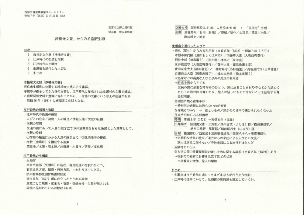 魅力再発見!西国街道2025 西国街道連携事業リレーセミナー 第3回 「浄橋寺文書」からみる宿場町生瀬