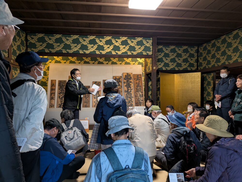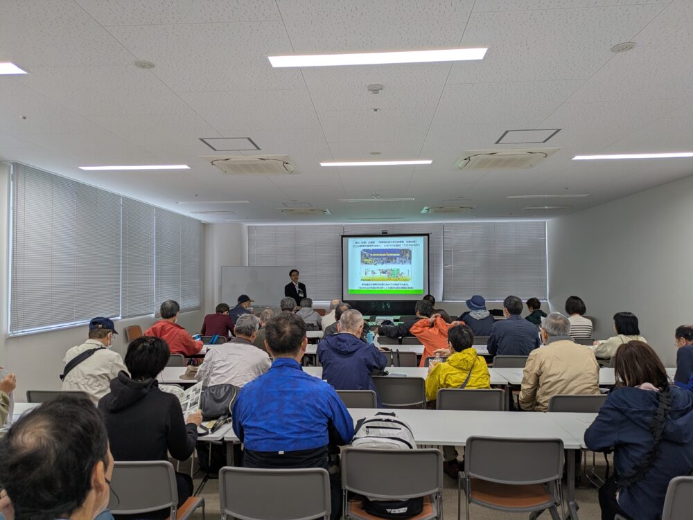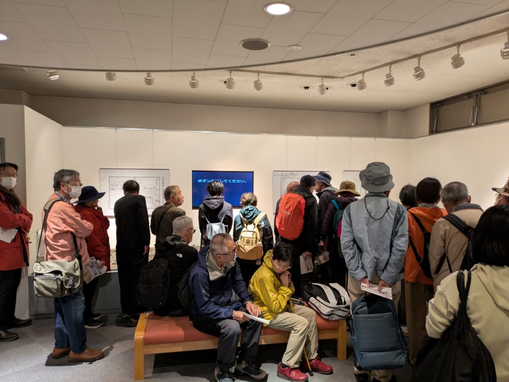 10月31日、草津駅に集合し、草津宿街道交流館館長の岩間さんの案内で、まずは講義の会場へ。「本陣や道標が現存する宿場町」と題してお話を伺いました。 「中山道の終点(起点)は京都?」や草津宿の特色として東海道と中山道の分岐点にある草津宿の役割や現存する道標、そして天井川など写真や資料をまじえ丁寧に説明していただきました。 講義の後、中山道を歩きながら、講義でお話していただいたポイントの説明を聞きながら昼食会場へ。 昼食後は、草津宿街道交流館で展示品を前にさらに草津宿のことの説明を聞き、4色刷りの浮世絵づくりにも挑戦しました。 最後に東海道に残る2つの本陣のうちのひとつ、国の史跡にも指定されている草津宿本陣へ。 収蔵品や建物のつくりなどを見学しました。 今回は中山道の宿場めぐりの第一回目。近江の中山道の宿場にスポットをあてたウォークイベントを柏原宿まで実施する予定です。