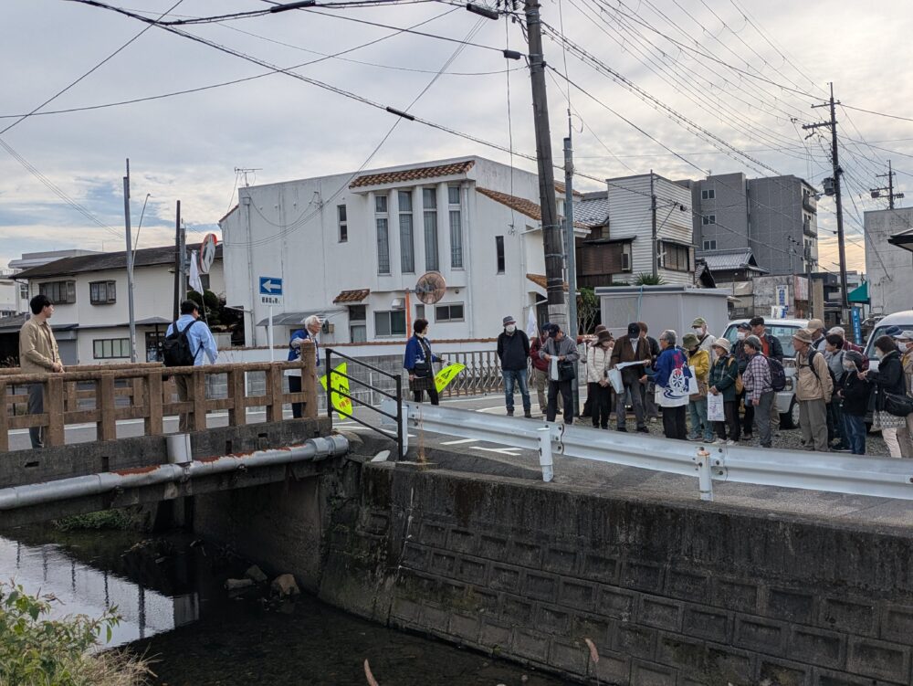 11月12日(水)、守山駅に集合。当日はJRの踏切でのトラブルのため、列車が遅れましたが、何とか20分程度の遅れでお集まりいただくことができました。