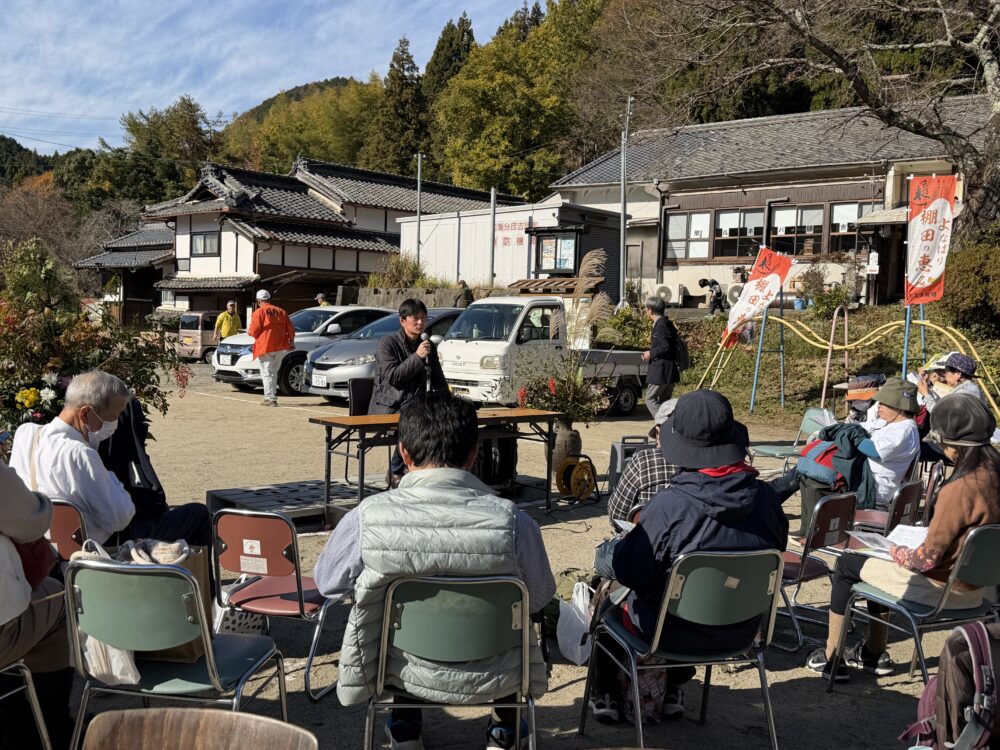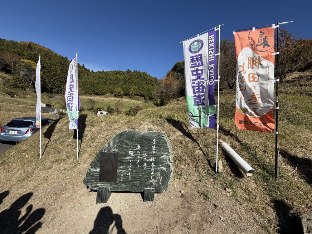 除幕式のあと、奈良女子大学名誉教授の坂本先生にお話を聞き記念撮影のあと吉隠公民館で行われている「よなばり棚田の恵みフェスタに参加してパネル展・新米のおにぎり・地場野菜の直売他盛りだくさんのイベントが行われていました