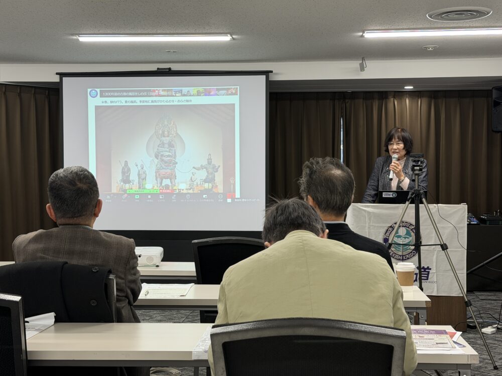次に総本山金峯山寺寺史研究室室長兼文化財主任の池田淳氏より「吉野動く!聖地変容!」と題し、飛鳥・奈良時代から時代とともに移動していった吉野の聖地として変容と魅力について語っていただきました。