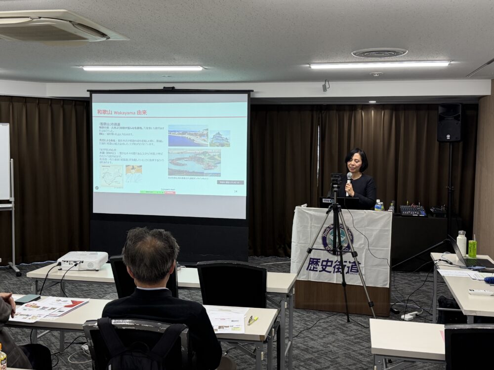株式会社インプリージョンプロデューサの森なおみ氏は、ガイドの立場から和歌山のお薦めスポットについて、一般財団法人関西観光本部事務局次長の野村昌彦氏からは「万博プラス関西観光推進事業と万博以降について」として、関西観光本部を中心に取り組まれている活動内容やガイド向け研修動画について。
