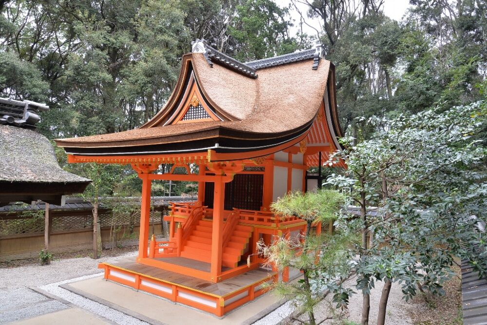 本殿は1448年に造営の城陽市域に現存する最古の建築(重要文化財)。全国で6番目に古い鉄湯釜は、現在も行われている秋祭りの湯立て神事との関連が考えられる(市指定文化財)。所蔵する大般若経(歴史民俗資料館寄託)は、石清水八幡宮から伝来した。