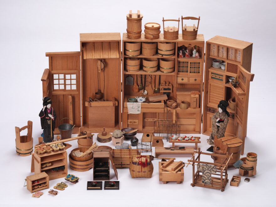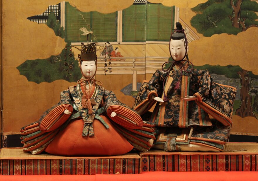 雛まつりの起源のひとつは、平安時代の貴族社会で日常的に行われていた少女たちの「ひゐな遊び」に求められますが、桃の節句にあわせて雛人形や雛道具を贈答したり、女性たちがそれらの人形で遊んだり、飾り付けたりするようになったのは江戸時代に入ってからのことです。