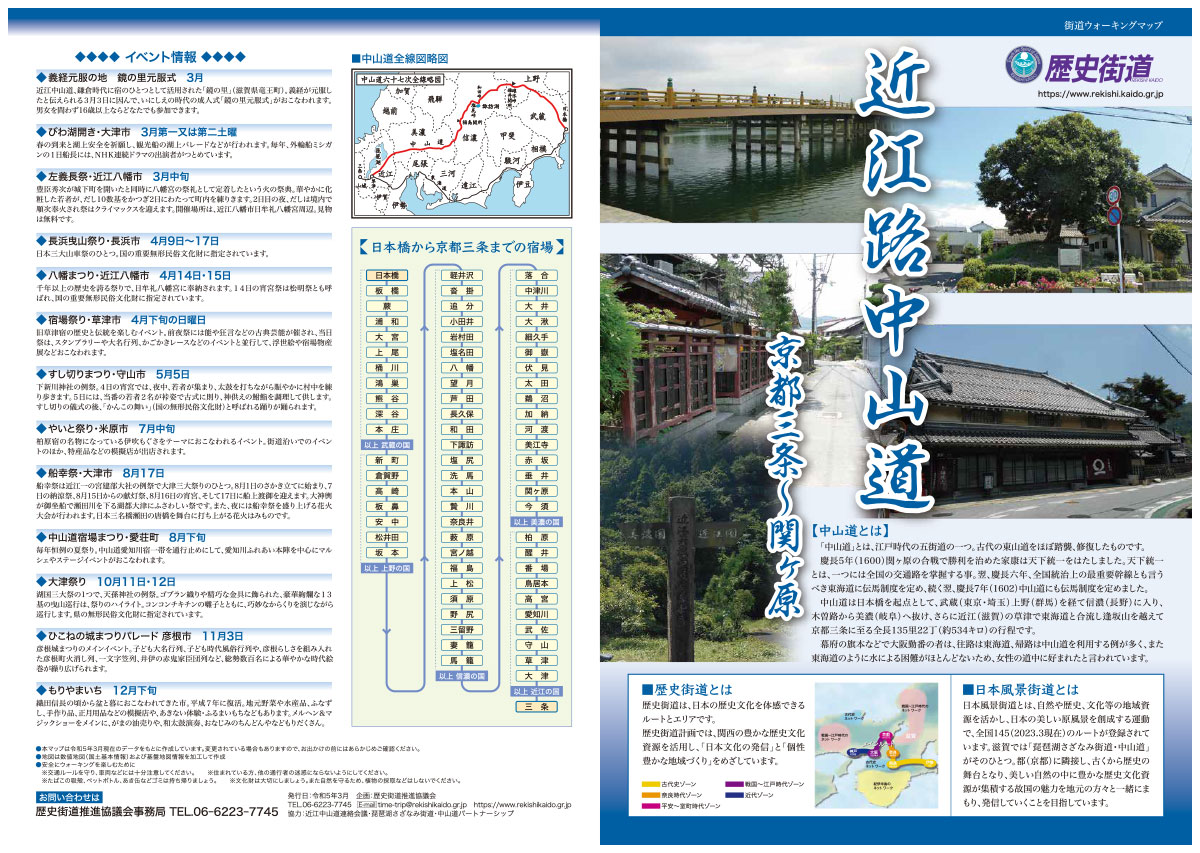 東の国をめざし、京都三条大橋を出発。蹴上インクラインを横手に車石の牛車道の復元広場を過ぎ、JR山科駅へ。追分道標から逢坂の峠を越えて、滋賀県へ。大津宿から木曽義仲ゆかりの義仲寺を過ぎ、膳所の旧城下町をぬけると近江八景・粟津晴嵐を経てJR・京阪石山駅から瀬田の唐橋をめざします。 -