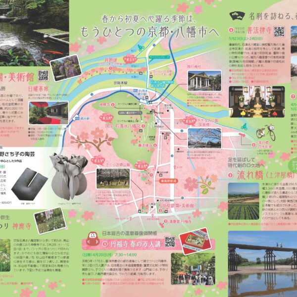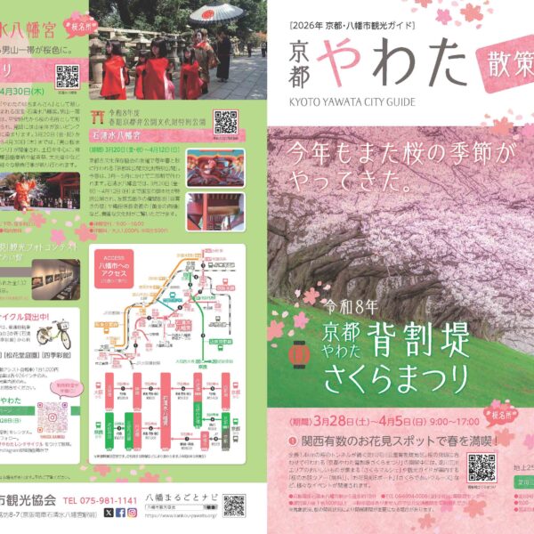 新着情報 イベント情報 お知らせ ニュース メディア イベント情報 フォーラム 展示 西国 親子参加型プログラム 飛鳥奈良京都 フォーラム・展示 京都やわた散策2026春号 京都やわた散策 春号ができました! 表紙を飾るのは3月28日から始まる「京都やわた背割堤さくらまつり」。 京都やわた散策春号は見開きのパンフレットで、駅前観光案内所にて配架中です! ぜひパンフレット片手に、春の八幡市をお楽しみください♪ 詳しくは 概要 開催日 2026年03月28日(土)~2026年04月05日(日) お知らせ ニュース メディア イベント情報 フォーラム 展示 西国 親子参加型プログラム 飛鳥奈良京都 フォーラム・展示