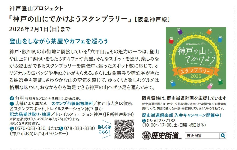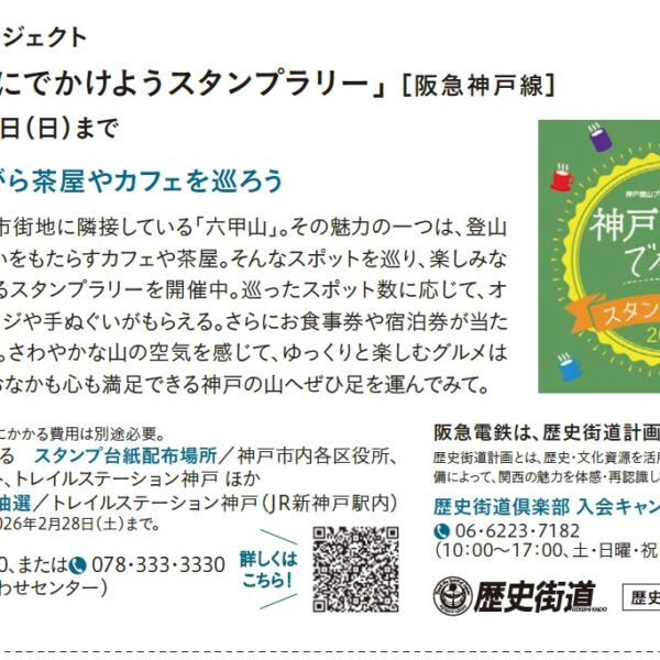 新着情報 メディア お知らせ ニュース メディア イベント情報 フォーラム 展示 西国 親子参加型プログラム 飛鳥奈良京都 フォーラム・展示 阪急電車沿線情報紙「TOKK」12月号掲載記事のご案内 毎月1日発行。歴史街道推進協議会は、「TOKKイチオシEvent&News」のコーナーに連載中。 12月号では、古くから阪神間の人々の暮らしと密接に結びついてきた『六甲山』の茶屋やカフェなどのスポットを巡るイベント「神戸の山にでかけようスタンプラリー」について紹介しています。 お知らせ ニュース メディア イベント情報 フォーラム 展示 西国 親子参加型プログラム 飛鳥奈良京都 フォーラム・展示